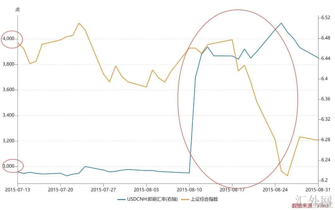 图2 2015年”8.11“汇改以前人民币强劲,一次性贬值依然打击股市