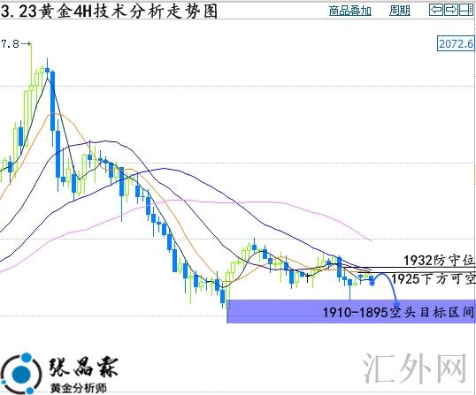 黄金日K线级别MACD快慢线任然维持开口朝下发散运行,表明日K线级别的下探仍未终结。而且日K线快慢线维持开口发散朝下运行也表明即便4小时级别有底部形态也不足够直接动员黄金大幅上涨。至于4小时线,黄金价格昨日收盘位于1925.35以下,所以或许在将来几个交易日承受看跌阻力。EMA50指标形成看跌阻力。当前等候黄金价格跌到下一首要计划1890.00。布林带开口走平,但方向稍偏下运行,价格运行在下缘,黄金持续遇阻,MACD已显著形成金叉,量能柱运行到0轴以下放量,示意夜里黄金价格有更深一步走跌风险。那么整体来说,张晶霖推荐黄金今日持续以回弹买跌为主。