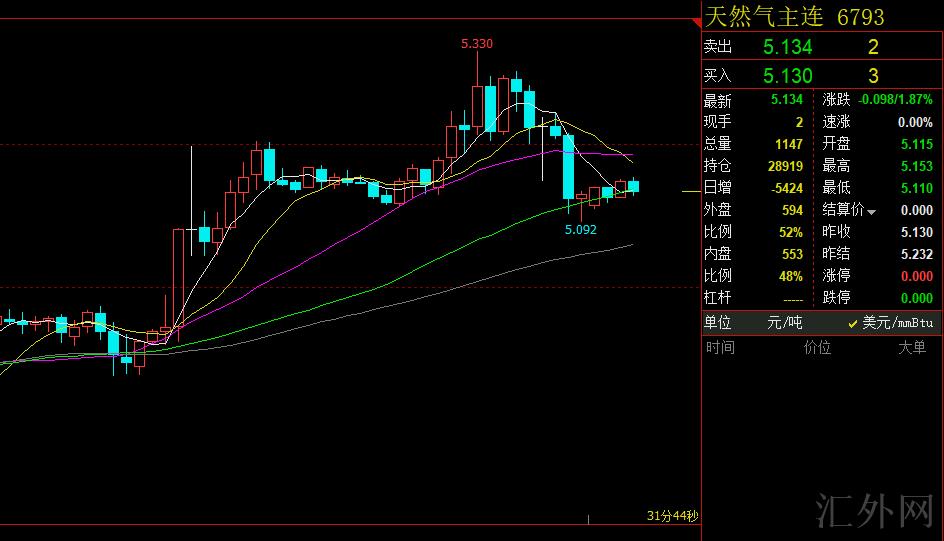 天然气最低已跌向5.092距离我们进场点位只有10个点,日间我们维持看多不变,支撑点置依旧生效。