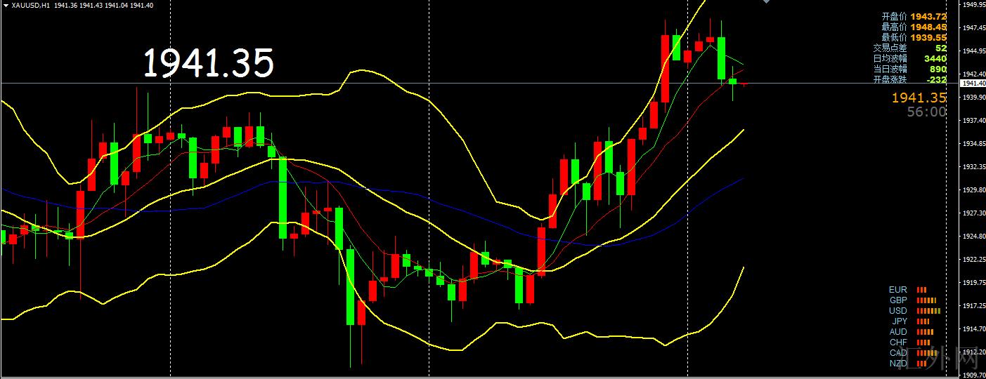 黄金开盘回弹1922左右,在回调下探1914左右,在回弹上探1926左右,在回调下探1917左右,在持续回弹上探1948左右,收盘1943附近,日K线结构图向上瞧,黄金日K线收阳线,阴阳交替排列之势横向延伸,典型的箱形整理修正形态。一旦向往上击穿位和向朝下击穿位均为波段买涨,买跌的好机会。从大势结构来分析,黄金价格从2070一路下挫,当前箱形修正,整体呈现头肩顶形态,后市向朝下击穿位的几率较大。4小时结构图,短线黄金价格形成w底形态,以下持稳1918支撑,上破颈线位1950,那么黄金价格将又一次向1974-1990区域发起打击。当前大阳推涨,黄金价格在布林带上缘线左右运行,有短线回踩需求。1小时线图,前价格上破下滑通道上沿线,布林带开口往上,KDJ金叉,当前日K线阴阳转换频繁,也要谨防今天又一次转阴的机会,综上所述,黄金在1912-1915水平显现持稳回弹,同期击穿了震荡平台压力位1924上升,更深一步更改了连阴回撤局势,操作上斟酌回撤布局多单为主,回弹高空为辅,上方注意1960美元压力,以下注意1926美元支撑。