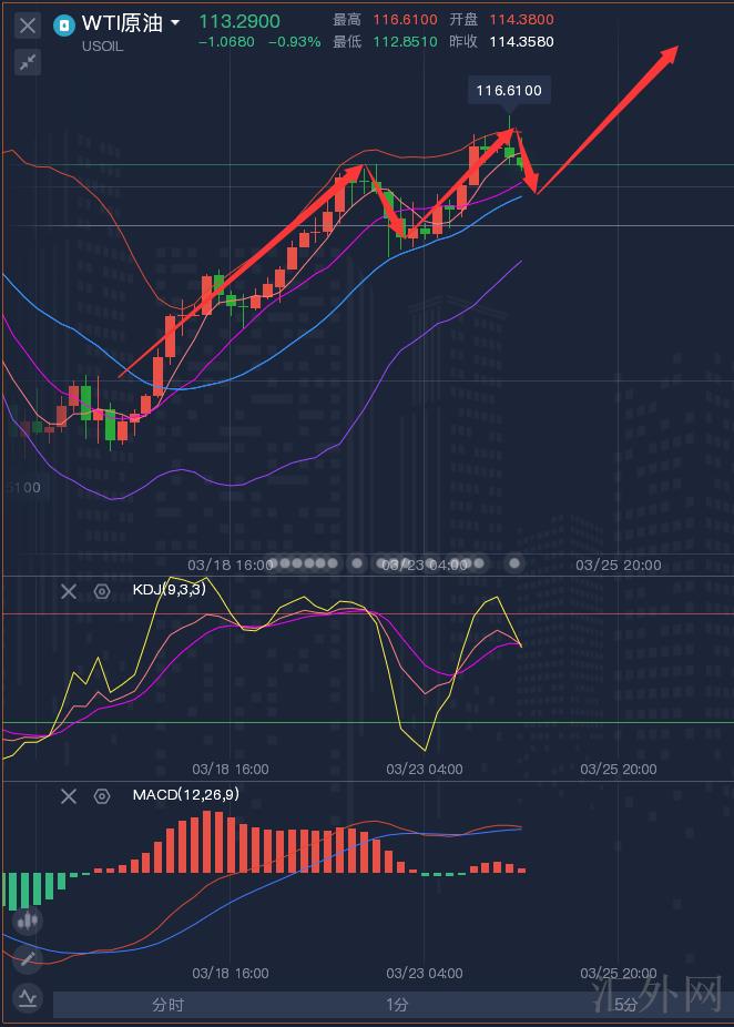 原油最近受多方原因支撑,再加之美国能源信息署有好处多头影响下,昨日持续往上试探,短线表现任然很强劲,就当前的状况来说它有又一次打击130的机会性,今日上方计划暂定120,所以当下的原油只需求关注什么位置买涨即可,星期三原油价格依托四小时中轨支撑上升,今天持续关注四小时中轨111左右支撑看多,这里也是5日K线左右支撑,刷新此处大胆买涨。