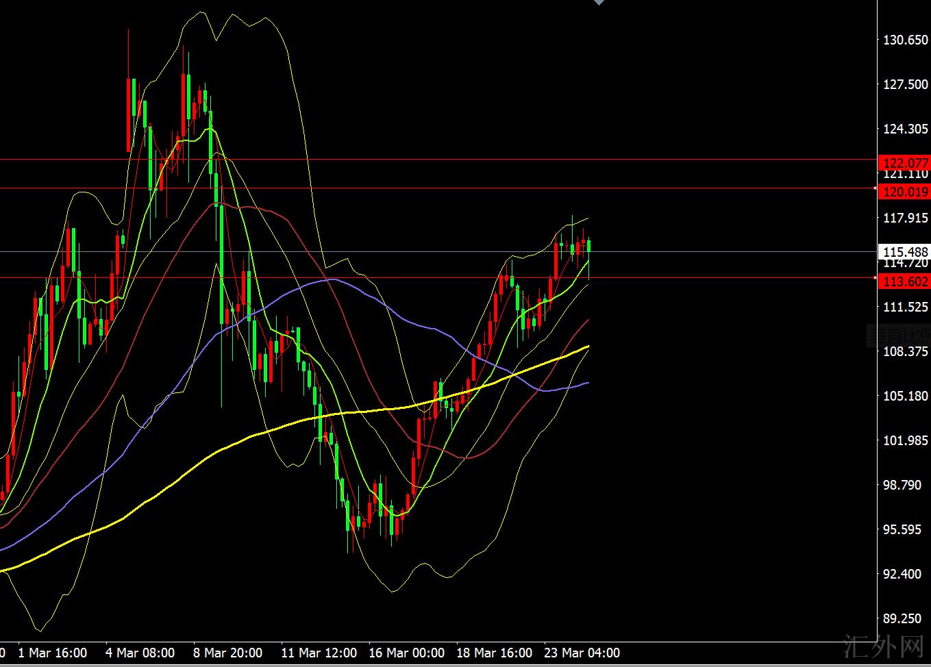 午夜原油高点横盘,买方整固蓄势,上方压力118突破则更深一步向上瞧120-130区间!以下突破立稳113后,已经成支撑点!强劲行情,低多为主!