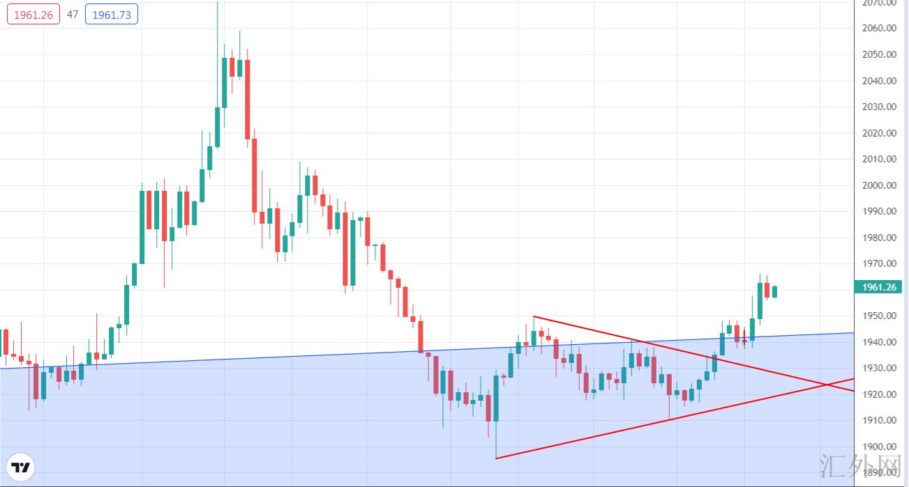 黄金昨天保持行情持续上升,日K线收阳,但是上影线比较长。今天又是星期五收周线,所以要防止到核心压力显现回调。周线压力在1975-1982左右,靠近这个位置不要再去追多。日K线支撑1943刷新买涨,强劲行情不会给到这一个点位,除非震荡。4小时支撑在1953一线,行情要想涨会在这个位置先拉一次,早间盘整的低位在1955,不消除今天在此上方运行。