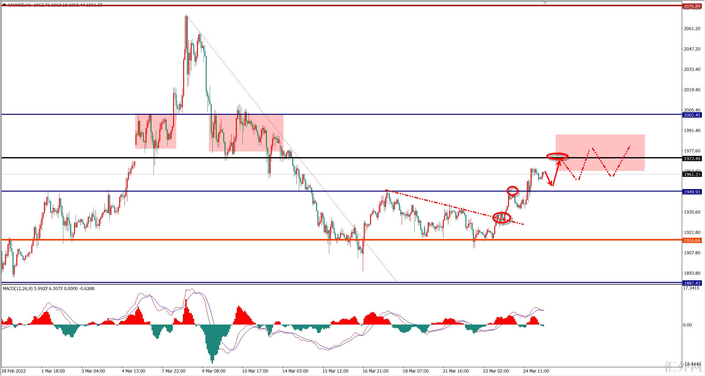 策略:推荐行情回调到1956-1954区间买涨,止损1946,计划1966、1975.