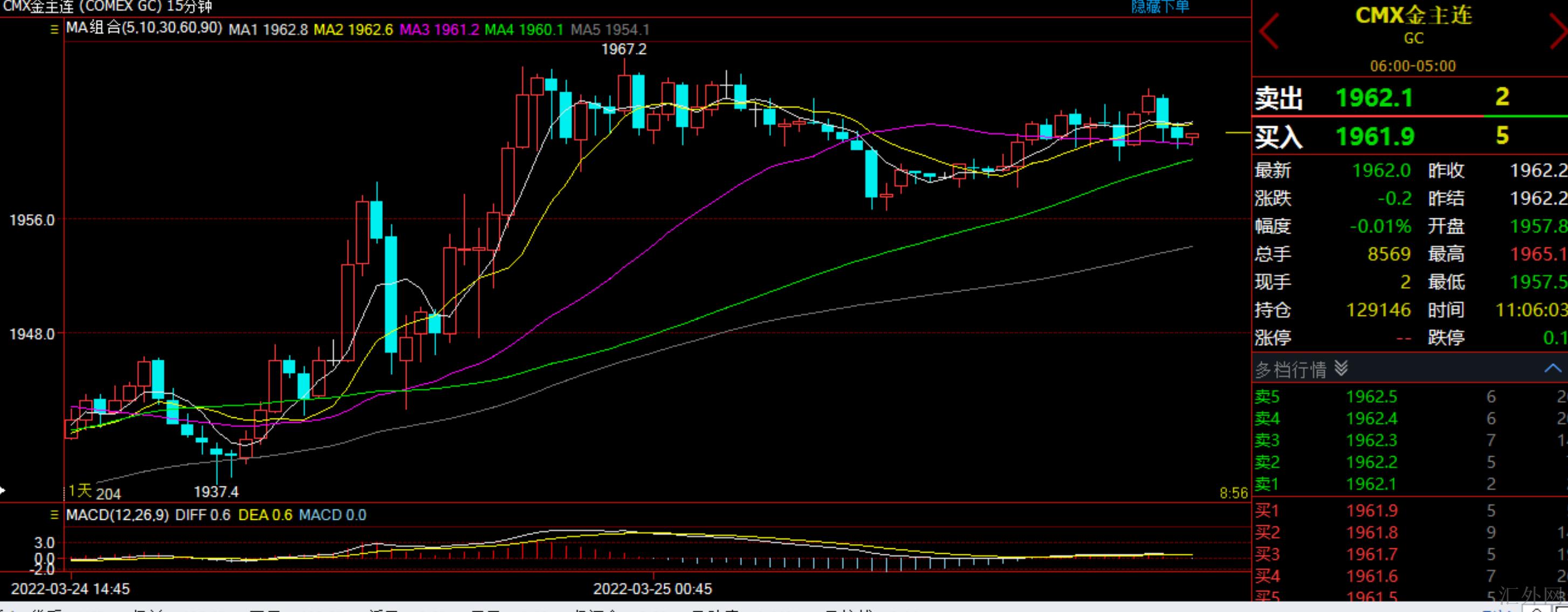 1,现价1962.1买跌,止损1965.6个点,止盈目睹1950美元左右;