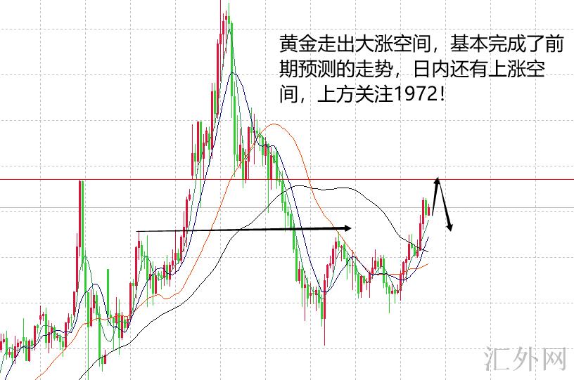 星期四裕鑫博文分析预期黄金在1936看多到1970,从亚盘回调到1937后,欧盘大涨一次到1955,美盘二次回调到1942,趋势强度在午夜迈出,午夜大涨到1965,单日暴涨30美金附近,差不多迈出了裕鑫预期的行情。实盘交易中,裕鑫给出1941多,规划是看1970,可惜没有拿住,错失一次大利润。这周当前大赚,今天从新布局,做好星期五行情。今天技术分析毫无问题,黄金依旧维持看多,日K线在暴涨中突破布林中轨形成强劲形态,星期五黄金上升或许又一次收阳,形成三红兵的放量,高点可参考的点位在前期1972左右,然而尽管是看多,但裕鑫看空今天是单边持续暴涨,今天或是冲顶回调走震荡,日K线涨满后或收十字星。小周期H4的状况需求看单边均线向上瞧多,日间支撑点位在1955/1948,亚欧盘或许直接上升,也或许回调后再涨,推荐星期五黄金看多不追涨,要么上升1972左右空,要么等候回调证实后面买涨。当前k线在小时线布林中轨之上,上升要去布林上缘抑制点,而点位上表现也刚幸亏1972左右,所以大小周期的状况统一,技术共振注意1972,1955/1948,买方趋势中不看空星期五有震荡回调表现。