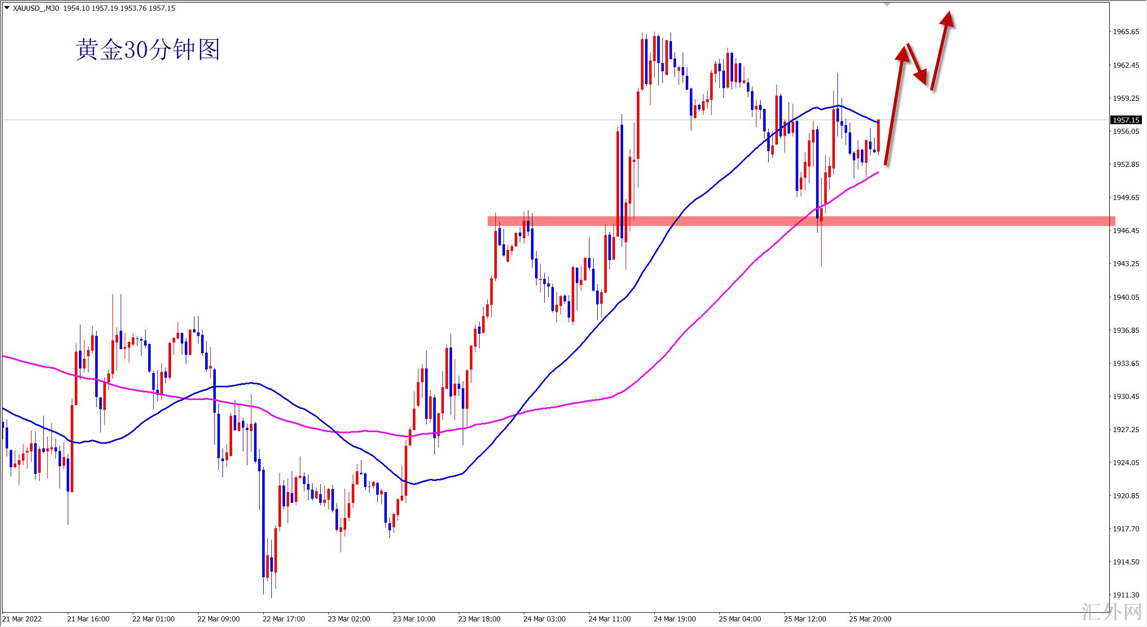 黄金1948上多,止损1940,计划1966-1980;