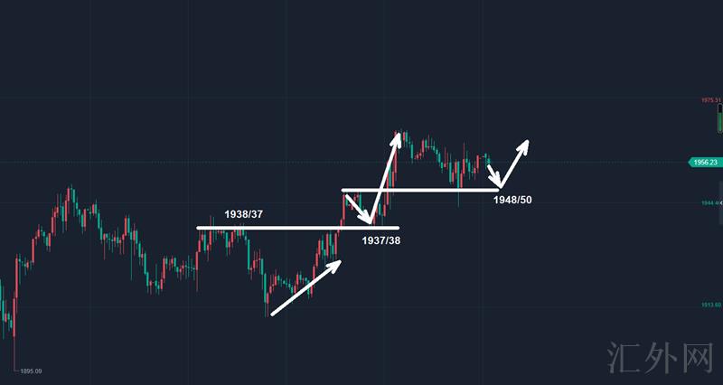 1942~1945点位左右短线多,止损正常设置五个点,计划7~20美金;第二次多单机会在1935~1938左右斟酌;空单留心1958~1960点位机会;