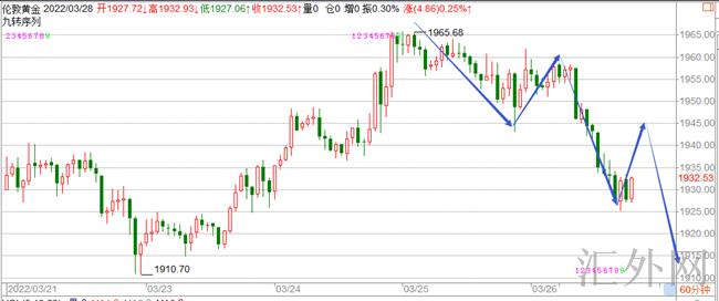 截至到迄今为止,黄金从开盘1958左右,最低跌向1925低位,30多美金的降幅。