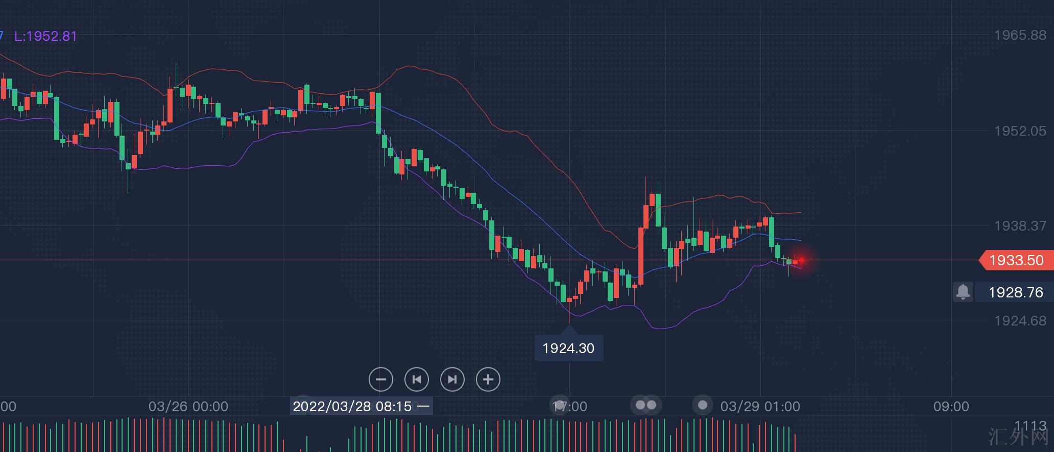 星期一(3月28号)美市亚盘,黄金现货下挫不足1%,交投于1940美元略以下,早些时候最多刷新1925.12美元低位。受美元国债收益率攀升和美元走高的牵累,且俄罗斯和乌克兰和平协商获得进度的期望降低了对该种避险金属的需求。报告表明,COMEX最活跃黄金期货合约北京时间3月28号22:21一分钟内买做空盘面瞬间成交2371手,交易合约总价值4.60亿美元。美联储将引领世界中央银行大举缩紧政策的预计助推,美国国债持续遭到抛压,黄金价格降幅最多到达1.6%。美国10年期国债收益率升高到2.5%以上,刷新2019年5月迄今的最高水平,也击穿了自上世纪80年代末以来的技术趋势线,令无息黄金遇阻。