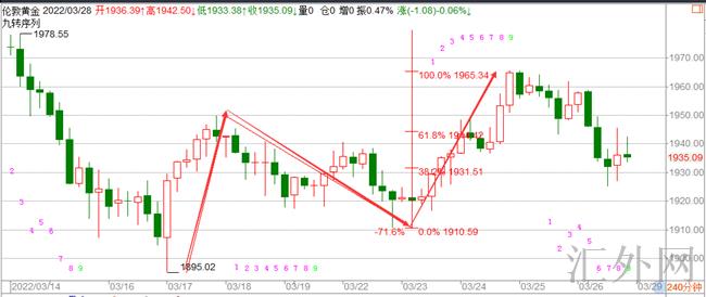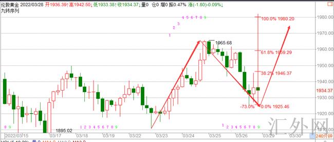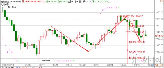 在美盘开市前,黄金从1925低位开始回弹,最高是回弹到1945高位。