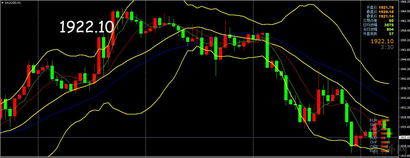 昨日黄金交易市场亚盘开盘在1958.1美元每盎司,后行情适当推涨给出1959美元每盎司,后行情回调,美盘最低给到了1916.7美元每盎司,后行情整理,日K线最终收线在了1922.6美元每盎司,日K线以一根下影线漫长的大阴线收线,而如此的形态收尾后,今日的行情保持空;日间短线仍有保持下探,以下注意1900-1895区域的短暂支撑。下探后或许还会停顿震荡拉锯。综上所述,黄金又一次遭遇阻力回撤,更深一步呈现黄金价格在2070水平遭遇阻力后的C浪下挫阶段,着重注意1895水平突破情形,更深一步朝下击穿将打开下探空间,上方强弱分界线在1937一线,今日操作上以回弹买跌为主,上方注意1940-1937美元压力,下探支撑注意1910-1916,突破看1900-1890美元。