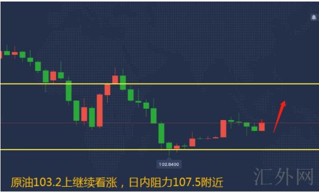 从技术分析来说,昨天原油价格尽管暴跌,但周线上任然处在买方行情,结构没有被打破,只然而短线日K线或许会跌,然而当前也是快要靠近核心支撑101了,原油价格靠近此区域的时机我们不能去追空,反而要试图低多,而周线上是不具备暴跌行情,所以我们依旧要坚持低多为主,高空为辅,周线的大阳不应当暴跌,就算回撤也理应完毕,早间大家是值得104.4现价直接先多,给103.3加仓,损103.2,看106-107!日间强阻应当是在107-107.5左右,到时再短空即可!