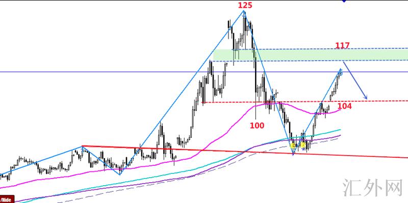 最近因俄乌局势发酵,原油涨疯了!价格最多攀升125美元左右,为2008年末以来最高;因西方制裁致使俄罗斯石油出口受扰,欧洲和美国盟友商谈禁止进口俄罗斯石油。原油冲顶125名置显现雪崩,最多跌穿100关口保持走跌到92名置,随后刷新92低点成功防守回涨。又因中东避险情绪重燃,供不应求的局势中更深一步被增大,原油峰回路转击穿110高点。当下原油冲顶115名置遇阻,隔日面临大幅回调,又一次跌至100关口左右,其行情和李鸿彬预计完全相符,向上瞧行情图就一目了然。日K线大阴收尾在布林中轨以下,MA5就行开始拐头朝下运行。四小时四连阴下挫,进而打开布林下缘空间,代表卖方仍有下探空间。今日以下注意100关口,回踩此位可多,若是到98关键点位务必多,回弹107-108可空。