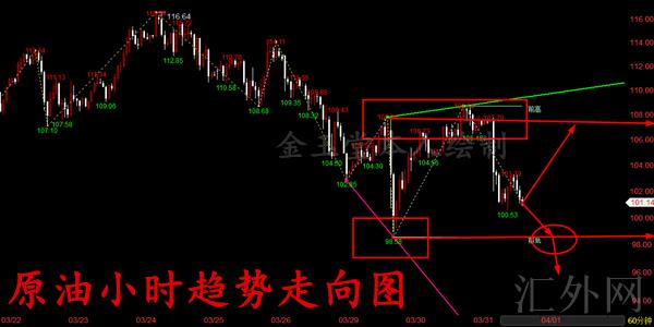原油夜里操作策略:原油当前短线可以以100关键点位先看回弹修复,多单临时注意103-105高位,更深一步看107-109抑制,防守止损99.5。