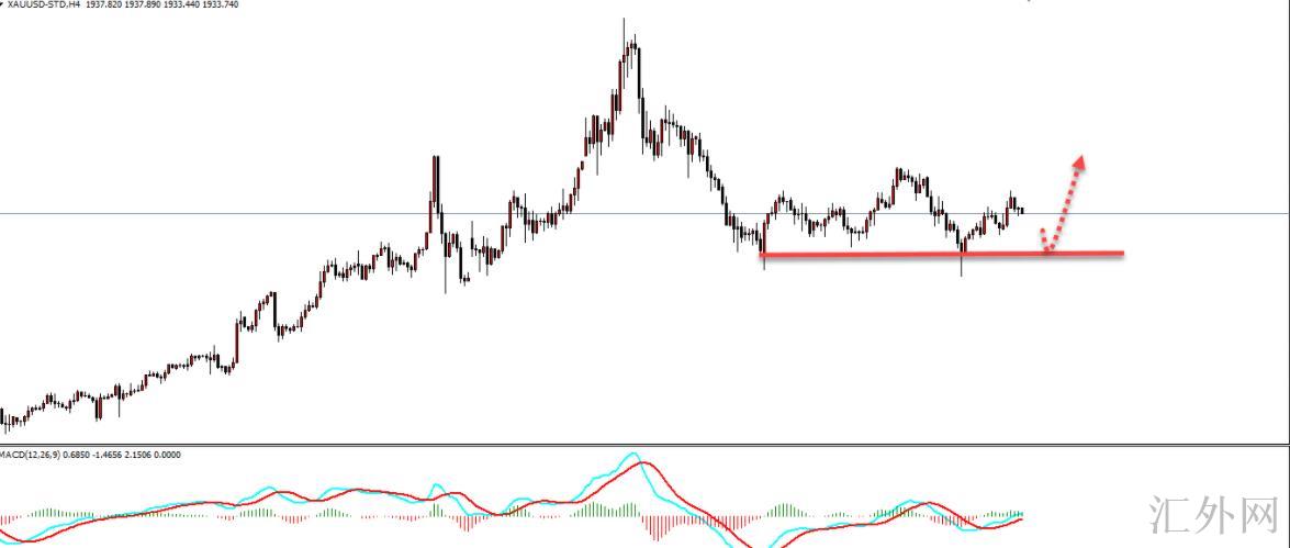 黄金4小时临时维持在区间当中,1890单V翻转行情,上方是4H的BOLL通道阻力1950左右,临时区间当中,支撑点置1910左右,其次就是1890,中间支撑较为弱势,不太牢靠。日K临时是区间当中,以中轨道作为分界线,即1945上下的位置,持稳1945的上面,则是依照1945上方择机寻求位置买涨,上方靠差不多2000-2020买跌;持稳在1945以下,则是依照1945-1880的区域震荡当中(但前面走了一次1880的摸底行情,所以不要主空)