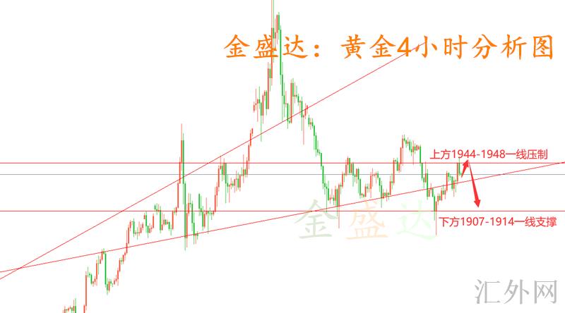 4小时慢性震荡上升后刷新布林道上缘遇阻回调收盘,当前布林道开始收口,局部进入缩减震荡,今日夜里仍有非农就业报告数据,报告面发布以前进入缩减区间,从4小时结构来说,周初下探回涨后面执行了一次连续性的回弹修正。然而整体保持在宽幅箱体1968-1890内震荡拉锯。当前在中值偏上稍显阻力,结合日K线三阳后面强度减弱。日间短线或许伴随震荡回调。区间边走边看,综上所述,黄金交易参考上金盛达推荐回踩买涨为主,回弹买跌为辅,上方着重注意1948-1945一线压力,以下短时间着重注意1917-1915一线支撑。具体操作以金盛达本人实时给出策略为准!手里有持仓的朋友可以及时与我沟通交流,金盛达为你供应许多操作方案!