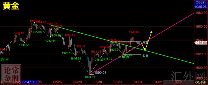 4小时慢性震荡上升后刷新布林道上缘遇阻回调收盘,当前布林道开始收口,局部进入缩减震荡,今日夜里仍有非农就业报告数据,报告面发布以前进入缩减区间,从4小时结构来说,周初下探回涨后面执行了一次连续性的回弹修正。然而整体现货金保持在宽幅箱体1965-1890内震荡拉锯。当前在中值偏上稍显阻力,结合日K线三阳后面强度减弱,日间短线或许伴随震荡回调。以下仍注意1919低位,失守则朝下轨1900-1890间谋求支撑,上方阻力1945-1950,短线摸高后不破1950则试图先驱短空看回调。