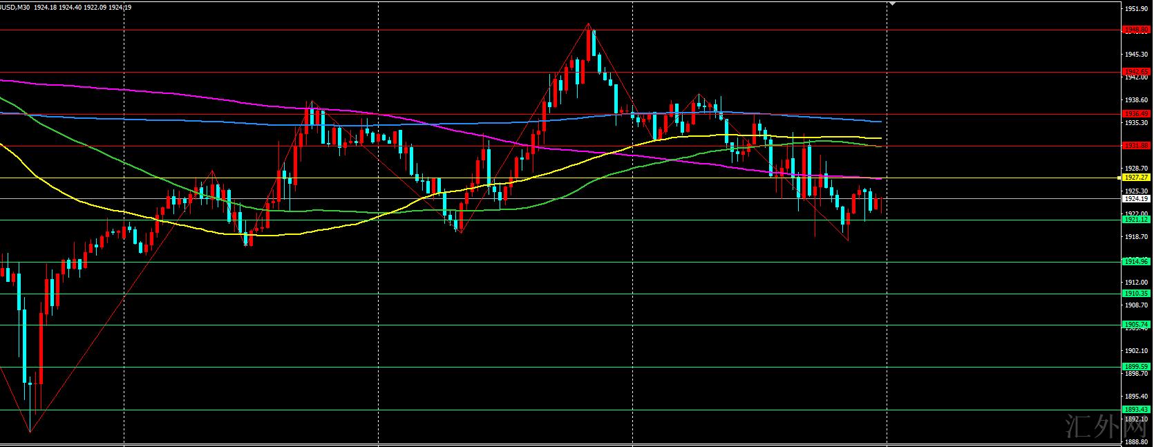 上方可买跌的位置则是1936/1932,再压欧盘时段,遭遇阻力可轻仓介入空单,防守1942,止盈计划1927/1921