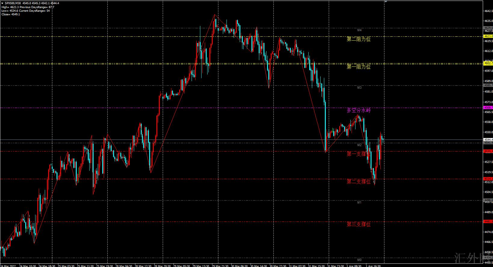 那么针对下周的美股来看,我们依旧依旧要关注星期二美国3月ISM非制造业PMI,星期四 美联储FOMC发布货币政策会议纪要。着重关注标普4568的持稳或朝下击穿情形,目前标普的支持点在4514/4481,这显示标普仍处在短线下探量能,同期在星期五后面,下周的股市不出无意中应当也是先回踩再震荡向上的行情。