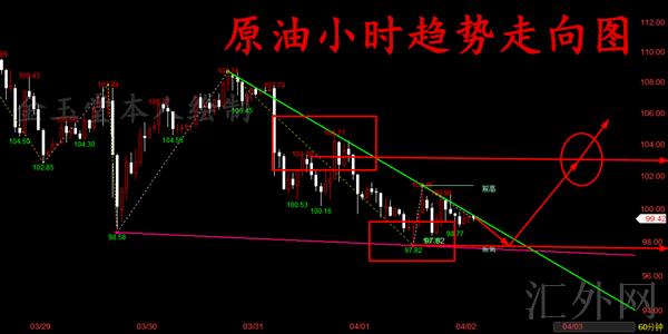 原油日间操作策略:原油目前以新低97.5-98支撑短线看涨看回弹修复为主,多单计划看上方101-103,更深一步看104-105抑制,防守止损放97。