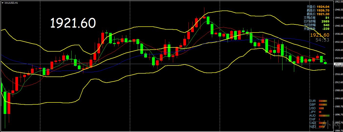 从四小时图来观察,亚盘的观点是等回档时先观察能否击穿MA20,后等候MA50左右的压力,黄金价格在推涨到阻力线后又一次下挫并按计划到达MA50左右以下的强支撑在1900-1890左右,假使支撑有效还会持续延长1890-1966的区域平台震荡,综上所述,黄金整体呈现出卖方偏空局势,今日操作上推荐高空低多,上方注意1930-1935美元前期压力位,随后就是星期五朝下击穿点1939美元防守,下探支撑注意1900-1890,朝下击穿后将拉开行下空间。