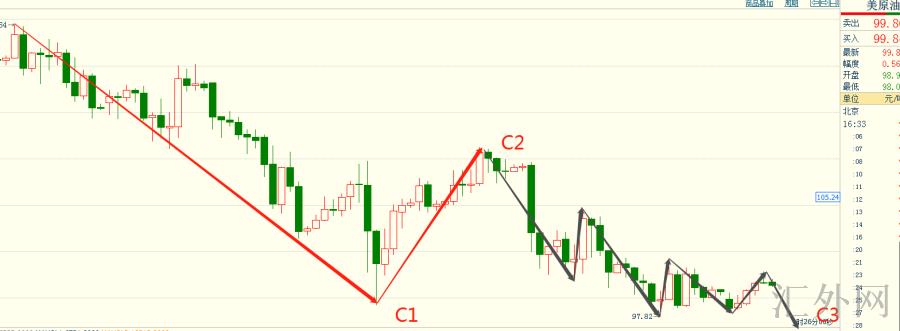 原油从图表上不看空像没有造成太大的震荡,但是因为于原油的价位过高,日间也造成了2美金附近的震荡区间,结构上当前处在C浪3的下挫行情当中,显著可以看出买方的状况是心有余而力不足,在低点构筑出平台型整理,当前来说涨头要想造成强劲的反攻机会异常的渺茫,所以依旧维持逢高买跌的思路,夜里推荐等候价格回弹至黄金分割38.2%的位置100.50一线空单介入博取C浪3的又一次下挫,风控点放置101.00上方,计划位目睹108~107
