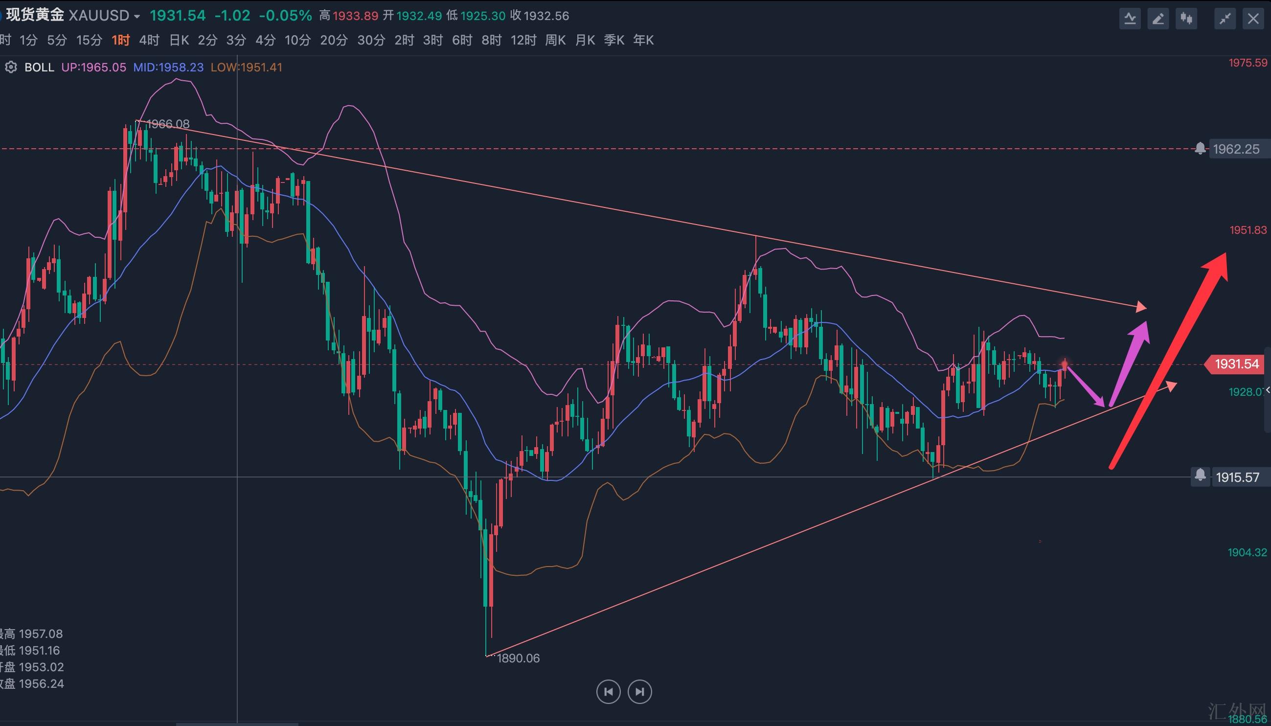 4.5黄金震荡三角缩减,伦敦金行情分析及交易参考