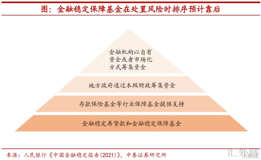 增强兜底防护,运用顺序靠后。“体系性金融风险”这一概念由环球清算银行在1994年提议,其核心要素在于体系性和传染性,即受于金融机构或市场之间的内在联系或有关性,一家或一部分金融机构失利引起一系列金融机构失利,对整个金融服务系统产生损坏,并对经济上涨造成严重外部负溢出效应。所以,金融平稳保障基金是在现有的风险处置机制框架上再加一层“兜底”防护,应当不会轻易动用,在运用顺序上预期将较为靠后。
