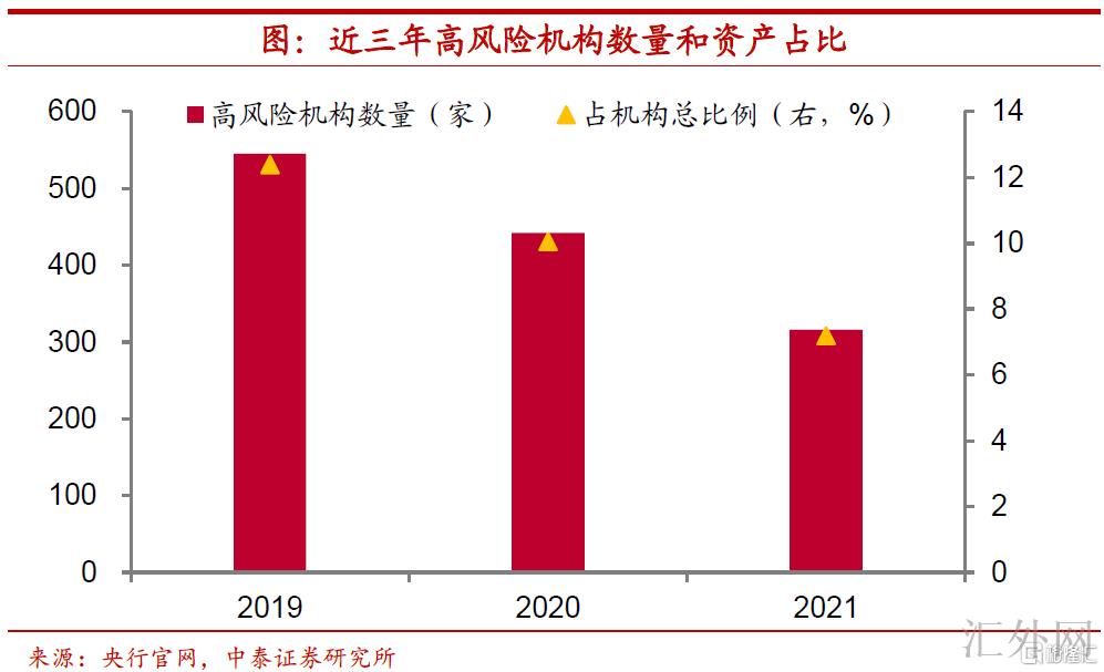 依据中央银行最新公布的金融机构评级结果,2021年四季度“高风险”类机构数量下滑到316家,较2019年同期降低了229家,在资金援手增强的环境下,我国金融风险处置有希望更深一步增速。