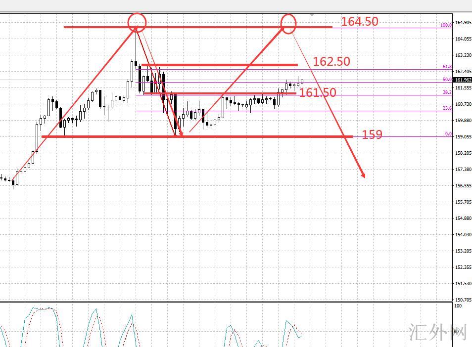 昨天在160.50布局磅日多单161.50完美止盈,今日持续买涨磅日,磅日和美日的行情是一样的,回踩买涨为主,当前看至前高,很有机会去探前高,形成M双顶形态行情,假使到前高未破则中线买跌磅日和美日。