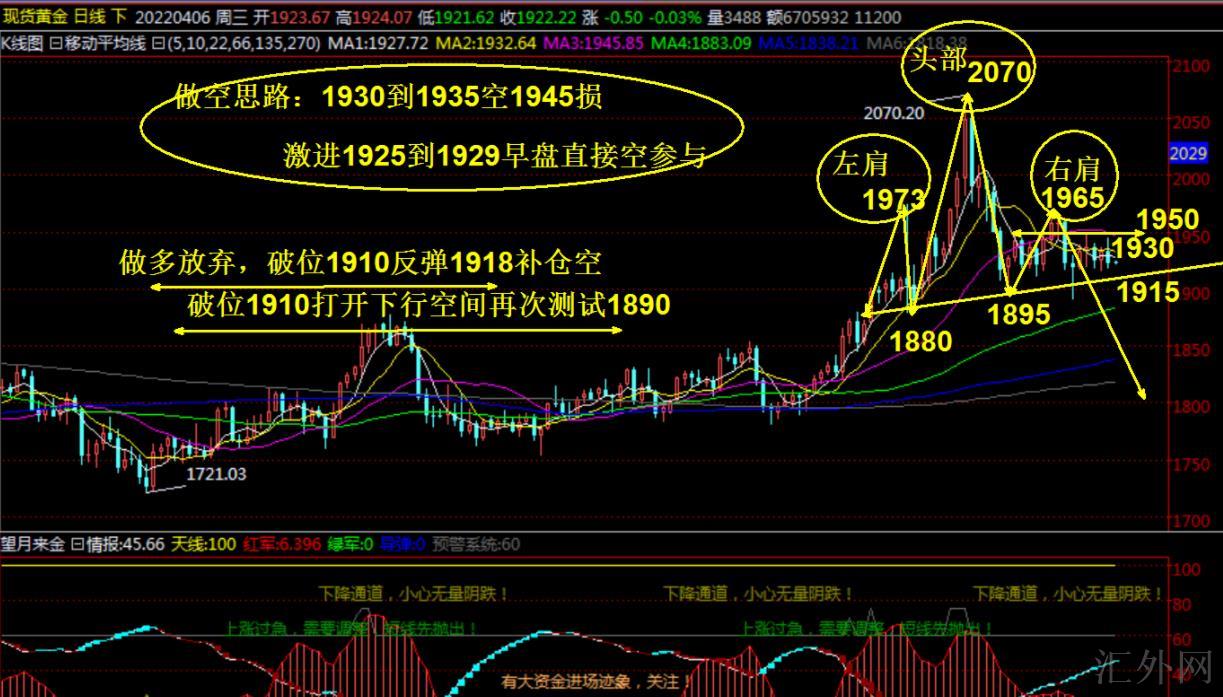 从目前盘面来说,价格全天形成宽幅震荡,区间依然没有打开,单K小阳,黄金日K线级别,昨日冲顶回调打压收阴,那么从K线形态向上瞧,又回归了阴阳切换的反复震荡局势,从3月中旬开始运行迄今,都在走区间性宽幅整理为主,大体区间环绕1910-1960,暂无短时间显著的趋势;诚然,盘整酝酿越久,后期一旦迈出此区间,开放趋势后的保持性强度还将总体偏大,到时则跟随突破后的趋势去跟立即可四小时价格由上线回归下线左右,一是价格遇阻,美联储3月会议记录显示,美联储原规划在近期一次会议上加息50个基点,政策策划者正就最早在5月开始缩减庞大资产负债表的规划促成统一,盘面上现在来说,依旧无趋势震荡,完全谈不上是纯多依旧纯空,日线图遇阻于中轨。