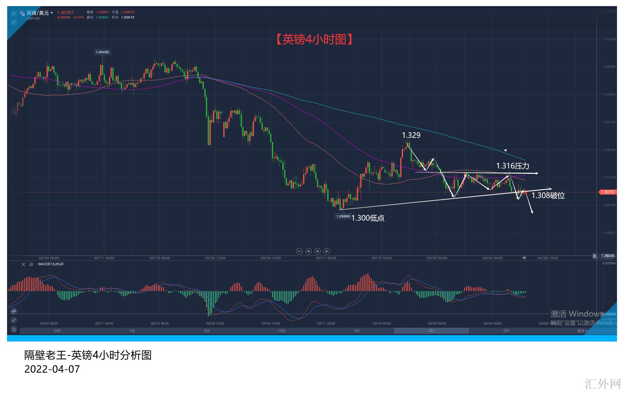 英镑4小时图: