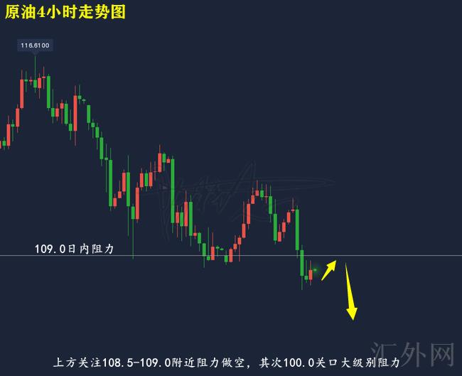 WTI原油星期三(4月6号)早盘开盘之出开盘上升,呈迟缓上涨;欧市盘中,原油扩暴升幅,创下日间高点103.97美元每桶,但仅刷新日间高点后立刻展开回调;直至美盘,在各大是有需求国表明将放出石油储备以应付提供紧俏,以及美联储的鹰派会议纪要提升美元,原油遇阻扩暴降幅,失守96.0关键点位位置,创下日间低点95.784美元每桶,截至收盘,原油自日间低点适当回涨,收盘在96.96美元每桶。