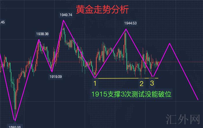 黄金交易参考:1930左右进场买跌,止损1935,计划看1915-1900;