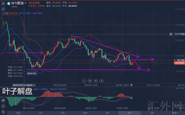 今日早盘会先保持弱势。综合来说,原油今日短线交易参考上邹彬晟推荐以回弹高空为主,回踩低多为辅,上方短时间着重注意99.3-99.8一线压力,以下短时间着重注意95.0-94.5一线支撑.