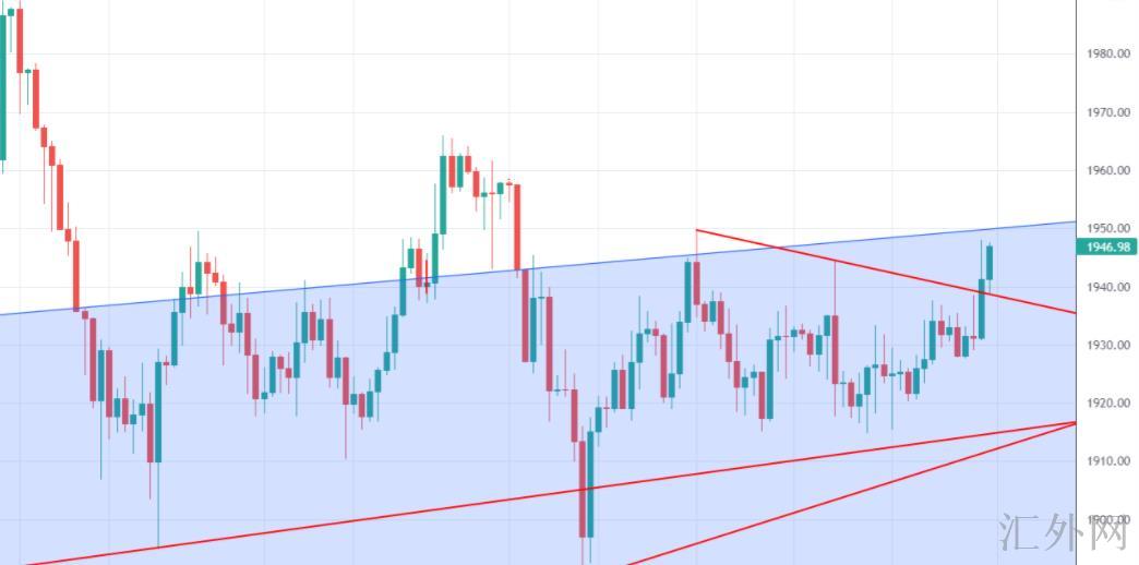 黄金从技术分析来说,黄金星期五开盘震荡回调下探1926左右,在回弹上探1948左右,收盘1945左右,黄金星期五的行情打破震荡向往上击穿位,这周收盘价1947,日K线三连阳,当前日K线结构上,行情处在均线带夹层中,而均线带整体呈现盘整交叉状态,技术上是有一确定移趋向的,但从昨日收线来说,短线结构重心又有一定抬升,上涨第一计划就需求注意1950水平能否击穿,击穿后面有希望去挑战1966前高水平,随后1974美元就是买方一个强弱的增速点。最近黄金一直处在一个震荡区间1915-1948,这周黄金刚好刷新压力位左右。