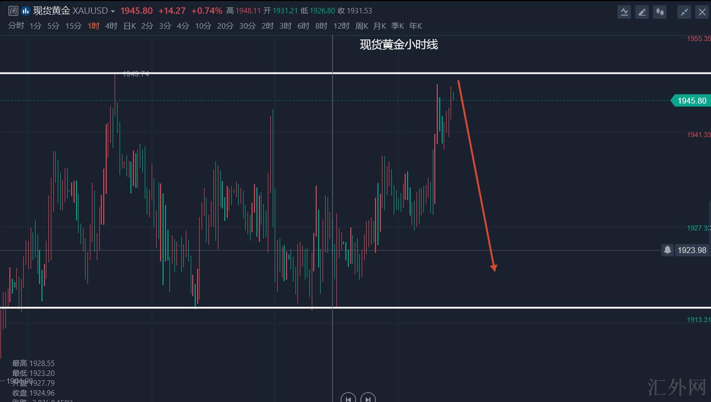 黄金价格四小时线连续收线上影线,大阳线总是缺疲软度,很难连阳突破,上方压力位一直是1950左右,k线始终未能立住,收盘价也是在压力位以下,小时线也是显现显著的看空吞没,大阴线实体接连下探,当前三角形在收窄,突破是必然。行情千变万化,点位仅供参考,如若显现突破亦可咨询作者了解最新行情,具体做单策略进场点位以道氏论金V:dslj88988实盘指导为准!