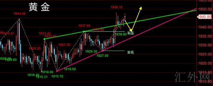 下周黄金行情上方着重依旧注意1950左右阻力试探,以下则着重注意1930-27一带支撑试探。