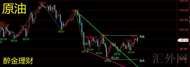 4小时上,星期五原油亚欧盘差不多持于中下缘运行,夜里最多刺破中轨后回调,仍受抑制于中轨位置,目前布林带马上收口,MA均线迈出金叉,KDJ随机指标三线往上,到达超买,MACD指标红色量能柱连续放量,快慢线金叉往上,原油当前短时间处在上升周期,星期一关注买方量能。综上所述叶子归纳:原油在经历接连下挫后,终于在这周星期五显现了降低态势,星期一着重关注原油价格上升接连性,更深一步打开上涨空间,以下守在在95.5美元,该价位是看多原油的多空分界线,该位置不朝下击穿有希望显现一次上升保持,上涨计划注意99.5突破情形,随后是102.0美元增速水平,星期一操作上先斟酌回撤布局多单为主,回撤支撑注意96.8-95.5美元一线。