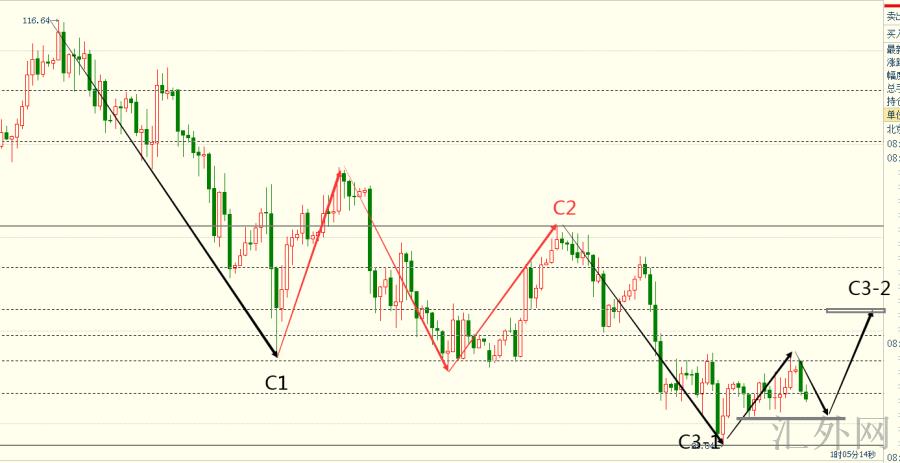 五早评给出的原油逢低买涨思路按计划兑现,得益于结构的分解让我们了解到回弹马上到来,当前看上周收出疑似十字星信号,许多的可以认定为在靠近前低的时机行情有回弹修复的机会。所以今日大约率还会保持该种回弹结构。推荐回调到95.60一线轻仓购入,风控95.10以下,计划97.60~98.40~98.80。依照鑫顺波浪交易体系的研判,当前额下挫行情临时告一波落,目前进入到了C浪3下挫当中的子浪回弹形态中,具体可以看做是C浪3-2,后期回弹到位后也会回到到主跌趋势中