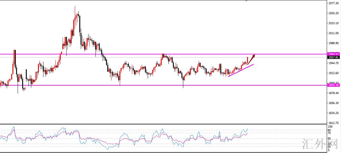 上星期五的推涨是的震荡了一周的黄金价格最终以红盘报收,不仅稳住了买方的信心,也守稳了1890的核心支撑点。尽管当前依旧在1960--1915的大区间之内,但当前重心在逐渐攀升,今天亚盘最多创下了上周的高位,到达1950一线。