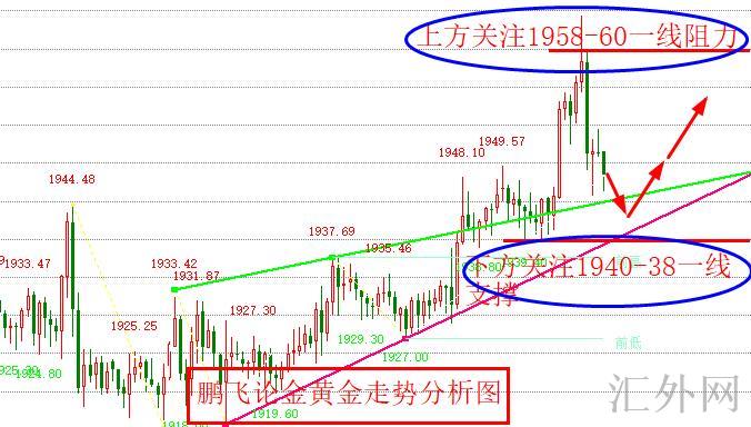 黄金日间策略推荐:上方又一次测压1958-60一线轻仓短空,止损1963,计划1948-45一线;