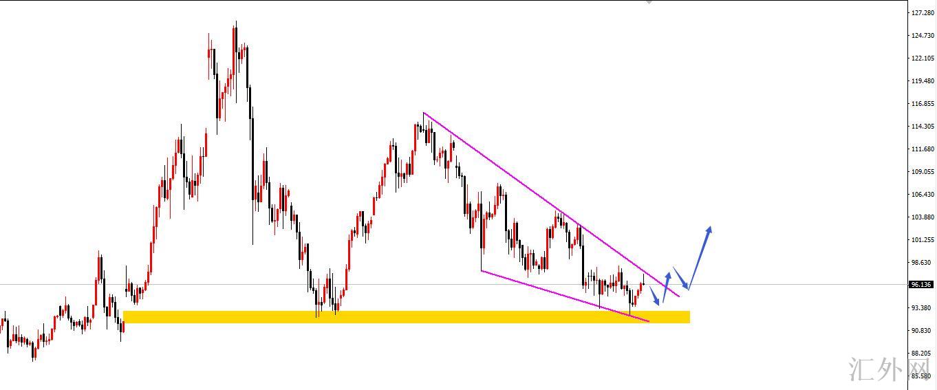 原油价格最近一直环绕98--93做震荡整理,这里是俄乌战事暴发的起始点,支撑强度很强,我们以前多次提及,95以下是无脑购入的可能。昨天最低摸底93一线后面就快速拉起,不管今天能不能再冲100,起码这段短差是有收获的。