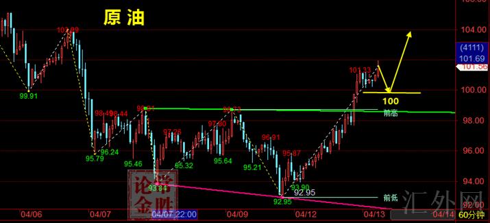原油回撤注意100关键点位多,止损99,计划看105上方