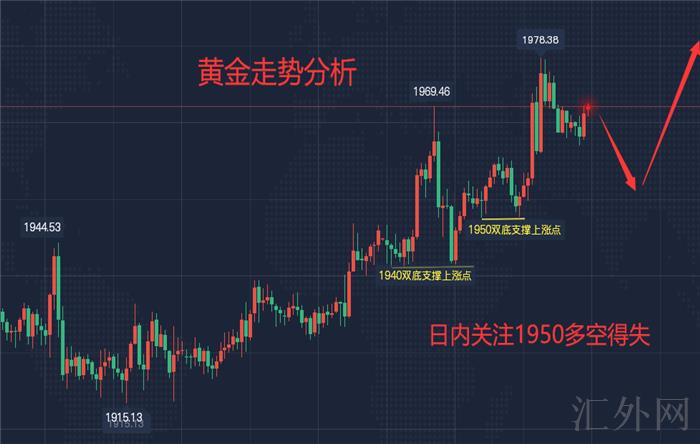 黄金自日间高点显着回撤,差不多尽数吐回了日间升幅。但仍收盘在1950关键点位上方,日K线报得四连阳。今天黄金价格倾向高点震荡或回调,日K线支撑1946左右,压力就是2070下挫到1890(0.5的位置)1980这里;当前行情又一次往上击穿高峰,操作方向高点追涨风险偏高,上升行情博空风险也大,稳健操作等候滞涨信号进空,先目睹1980左右有没有阻力,假使不能直接贯穿此位置而且长时间横盘,就可以准备买跌,以下的话假使有机会回归1955左右准备再接多单一次。综上所述,黄金今日交易参考上石万金推荐回踩低多为主,回弹高空为辅,上方着重注意1980-1985一线压力,以下短时间着重注意1955-1950一线支撑。