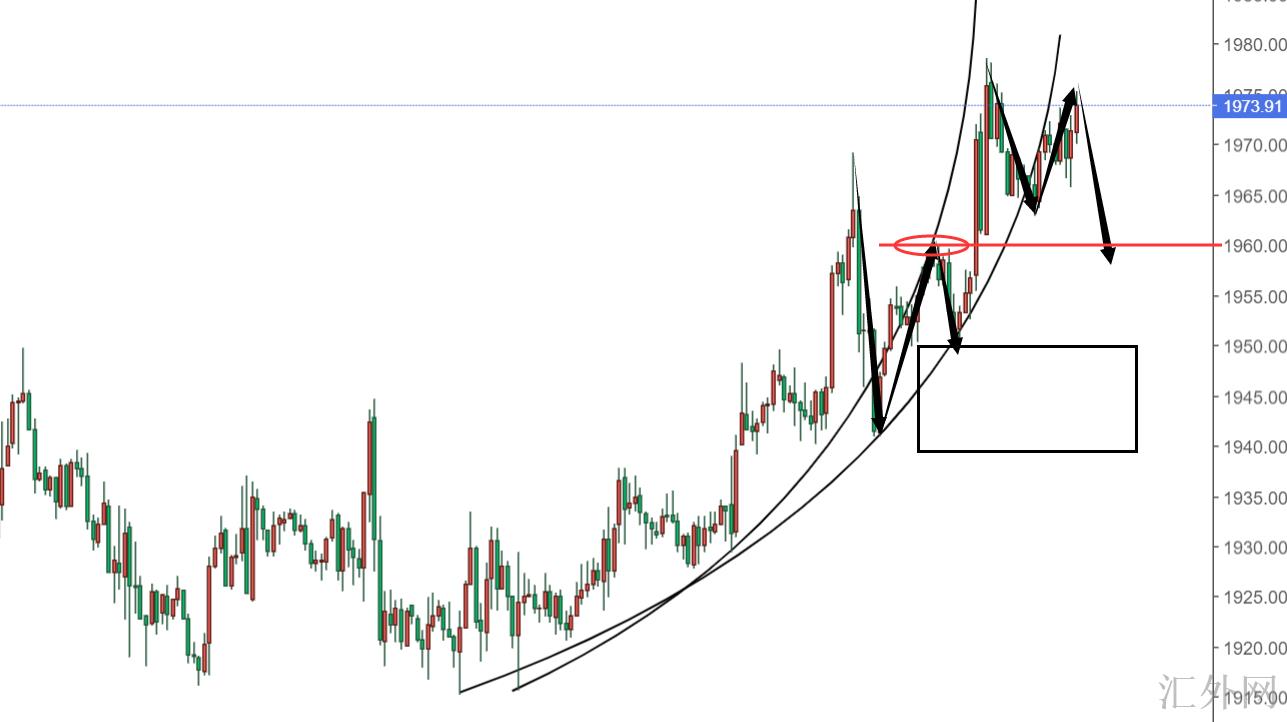 从昨天夜间黄金再次上拉,后续回踩也没力量的时机,我就知道了这结果是上升,由于在这以前,我最后一笔看空回1930的交易是在星期一,回去了我就依照以前一样持续震荡看空捞钱,假使不回去,上到了1980,那我就歇着,不想劳敏伤财摸顶。