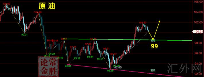 夜里原油行情分析:昨日,原油回弹并在颈线低位93.50上方收高,击穿98.80的临界点,形成一次强势回弹,升到101.20。今天早上开盘价为102.0附近。日K线收获中阳线。波基总体较大。昨天,击穿了98.80,扫损空单后盘中反手跟多向上瞧100.80-101.80也差不多符合节奏。