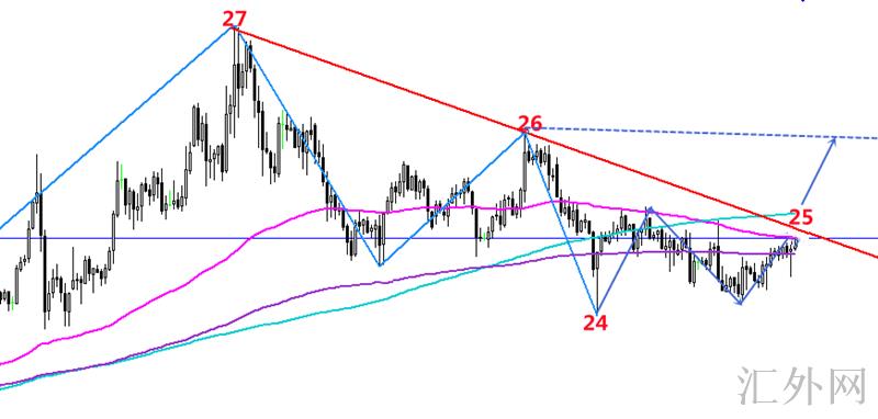 白银最近因俄乌局势避险受益,最多击穿25.5高点到26.5名置,然而上涨趋势并没有得到很不错的保持,而是打击26.7高点显现了大幅回踩。当前白银打击25.8高点遇阻,最低已经刷新24关键点位,多次试探24低点都未能跌穿,且连阳回弹重返25.5名置,MA5—MA10均线形成金叉上涨,而且击穿了27—26的短时间下探趋势线,短时间回弹有希望保持。操作上回踩25关键点位可布局多单,上方注意26左右空。