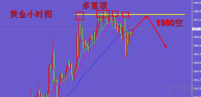 黄金当前在1980左右形成多重顶形态,此种K线是看跌的信号,逢高直接干空,下周若击穿1985则可以进多,计划直接就是2000的节奏,交易规划买跌接连收割多单,若击穿则损一单,这就是稳健收益的诀窍,规划做好后,严格的落实实施,资金曲线才可稳健上涨,没有大的回撤,今日休市,各位投资朋友可以借这个休息时间,多归纳交易记录,寻到适合自己的战法!